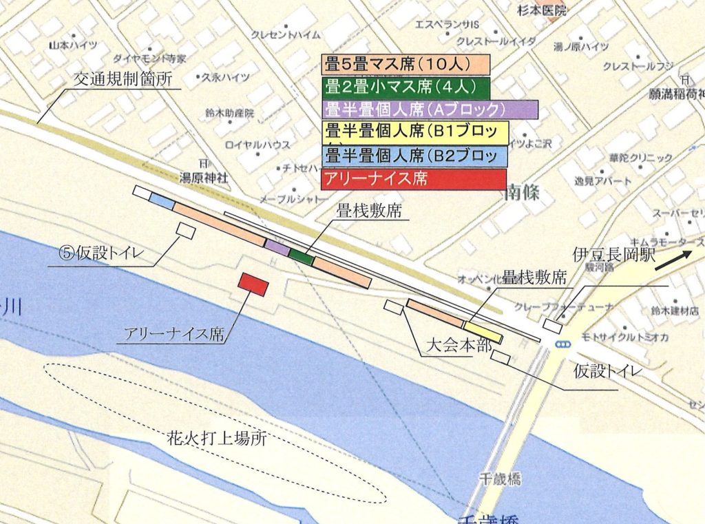 残席があるようでしたら当日でも桟敷席でご鑑賞いただけます。イス以外はすべて畳敷き。桟敷席は『劇場型花火』を最もよい状態で体感できる快適なお席です。特に一部の花火は特殊効果を使用するため、桟敷席でご覧頂くことで最もお楽しみ頂くことが出来ます!ぜひこの機会に一度ご利用ください!